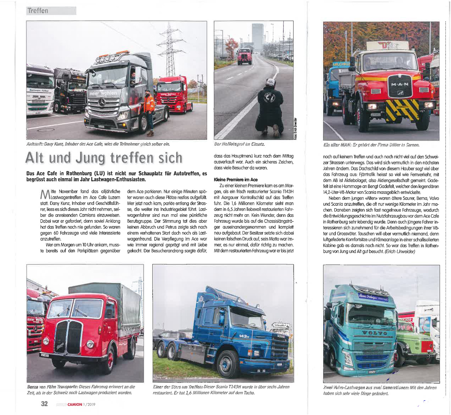 Das Ace Cafe in Rothenburg (Luzern) ist nicht nur Schauplatz für Autotreffen, es begrüsst auch einmal im Jahr Lastwagen-Enthusiasten. Die Dillier AG war mit einem MAN dabei.Siehe Pressebericht der Swiss Camion 1/2019